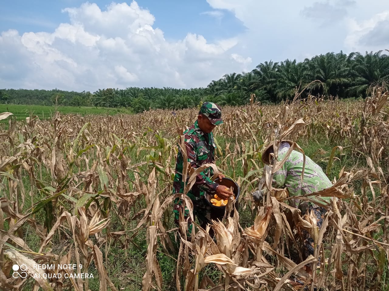Babinsa Bantu Panen Jagung Di Desa Binaan,Demi Sukseskan Swasembada Pangan