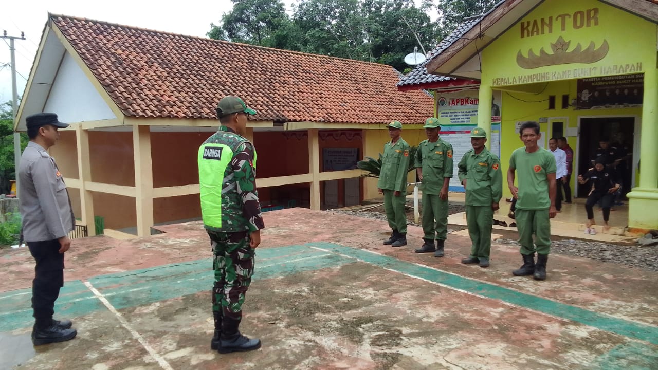 Kepala Kampung Bukit Harapan Herwani, mengucapkan banyak terima kasih kepada Danramil atas dukungan personelnya yang meluangkan waktunya untuk melatih anggota Linmas.
