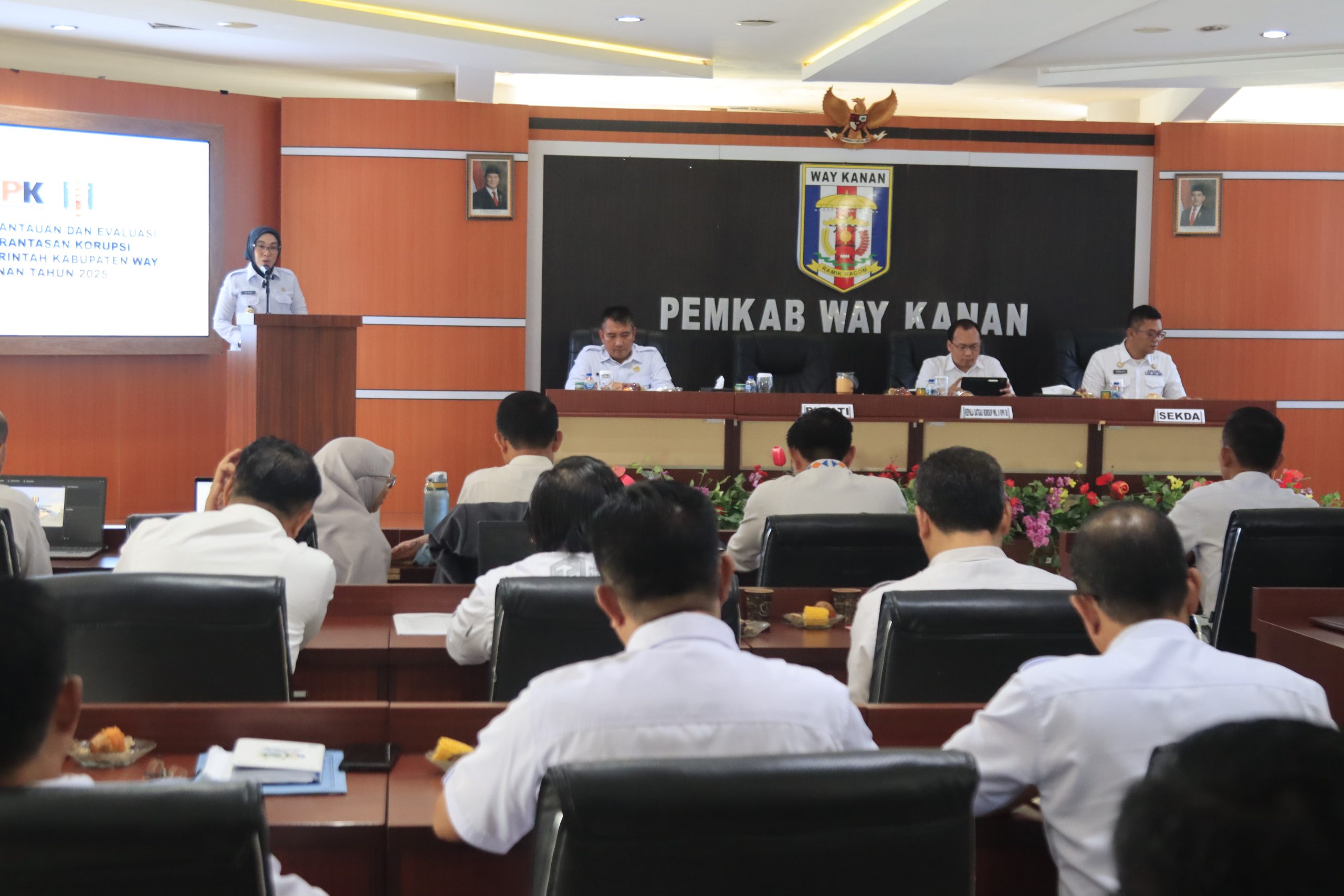 Way Kanan – Pemerintah Kabupaten Way Kanan menerima kunjungan Tim Direktorat Koordinasi dan Supervisi Komisi Pemberantasan Korupsi Republik Indonesia (KPK-RI) dalam rangka Rapat Pemantauan dan Evaluasi Pelaksanaan Program Pemberantasan Korupsi Pemerintah Kabupaten Way Kanan Tahun 2025. Kegiatan berlangsung di Ruang Buway Pemuka Pengiran Tuha, Rabu (26/11/2025).