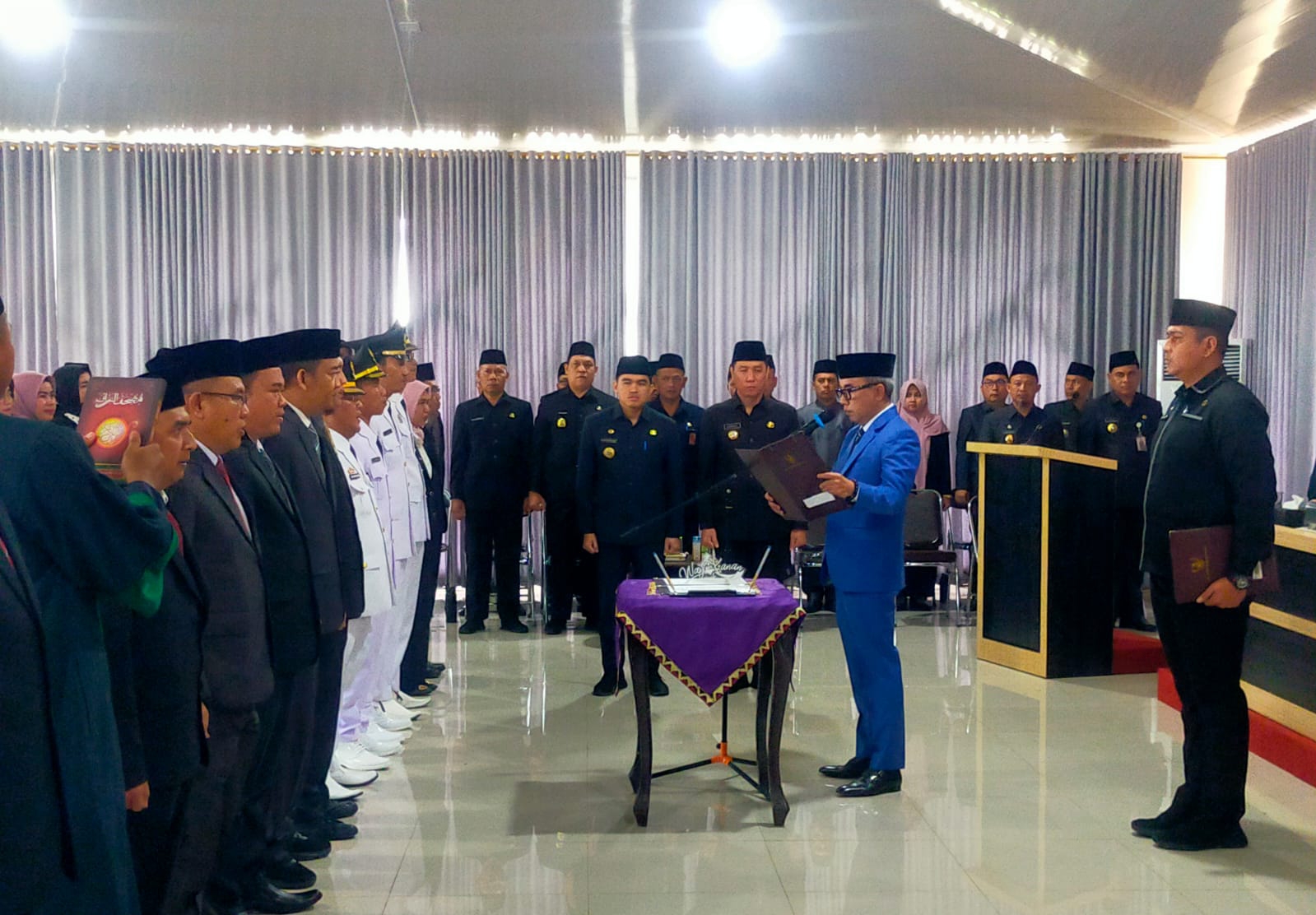 KABARGHAM.COM – Bupati Way Kanan Raden Adipati Surya kembali melakukan Rotasi atau Evaluasi jabatan terhadap sejumlah Pejabat struktural dan fungsional di lingkungan Pemerintah Kabupaten Way Kanan.Pelantikan Terhadap Pejabat Pimpinan Tinggi Pratama Eselon II, Pejabat Administrator dan Fungsional itu berlangsung di Ruang Buway Pemuka Pengiran Udik Lantai Tiga Gedung Skretariat Daerah Kabupaten Way Kanan. Rabu (3/1/2023).