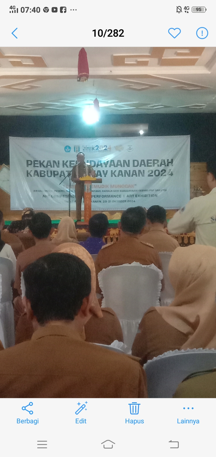Bupati Way Kanan Raden Adipati Surya membuka Pekan Kebudayaan Daerah Kabupaten Way Kanan 2024, berlangsung di Nuwa Adat, Blambangam Umpu, selasa (29/10/2024).
