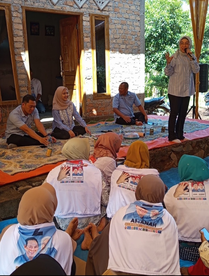 Calon Wakil Bupati Kabupaten Way Kanan Ayu Asalasiyah, S.Ked dari Pasangan Calon Bupati Way Kanan Drs.H. Ali Rahman, MT (Paslon Amanah) dengan nomor urut 2, menggelar kampanye tatap muka di dua tempat berbeda yakni Kampung Bumi Dana dan Suma Mukti, Kecamatan Way Tuba, Senin (14/10/2024).