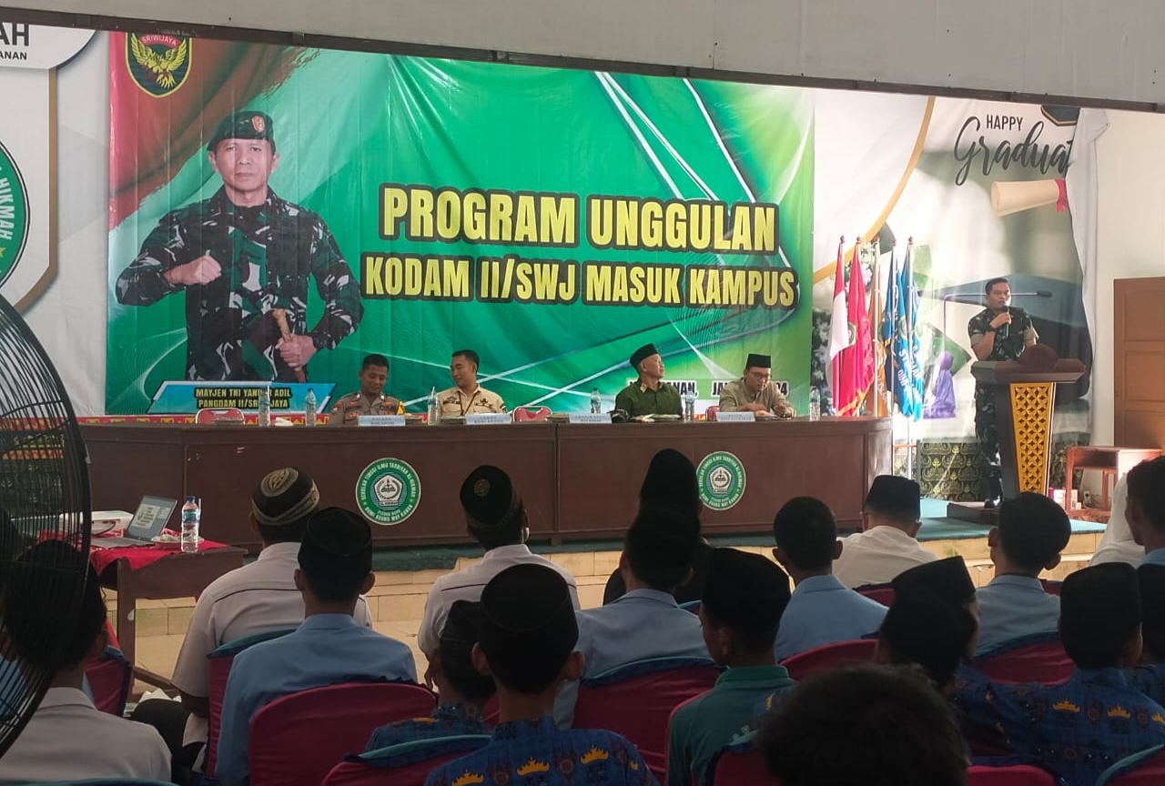 KABARGHAM.COM – Komandan Kodim 0427/Way Kanan Letkol Inf Aan Fitriadi, S.I.P Berikan pembekalan wawasan kebangsaan kepada mahasiswa STIT AL-HIKMAH di Aula STIT Pisang Baru Kec. Bumi Agung, Kamis ( 25/1/2024).