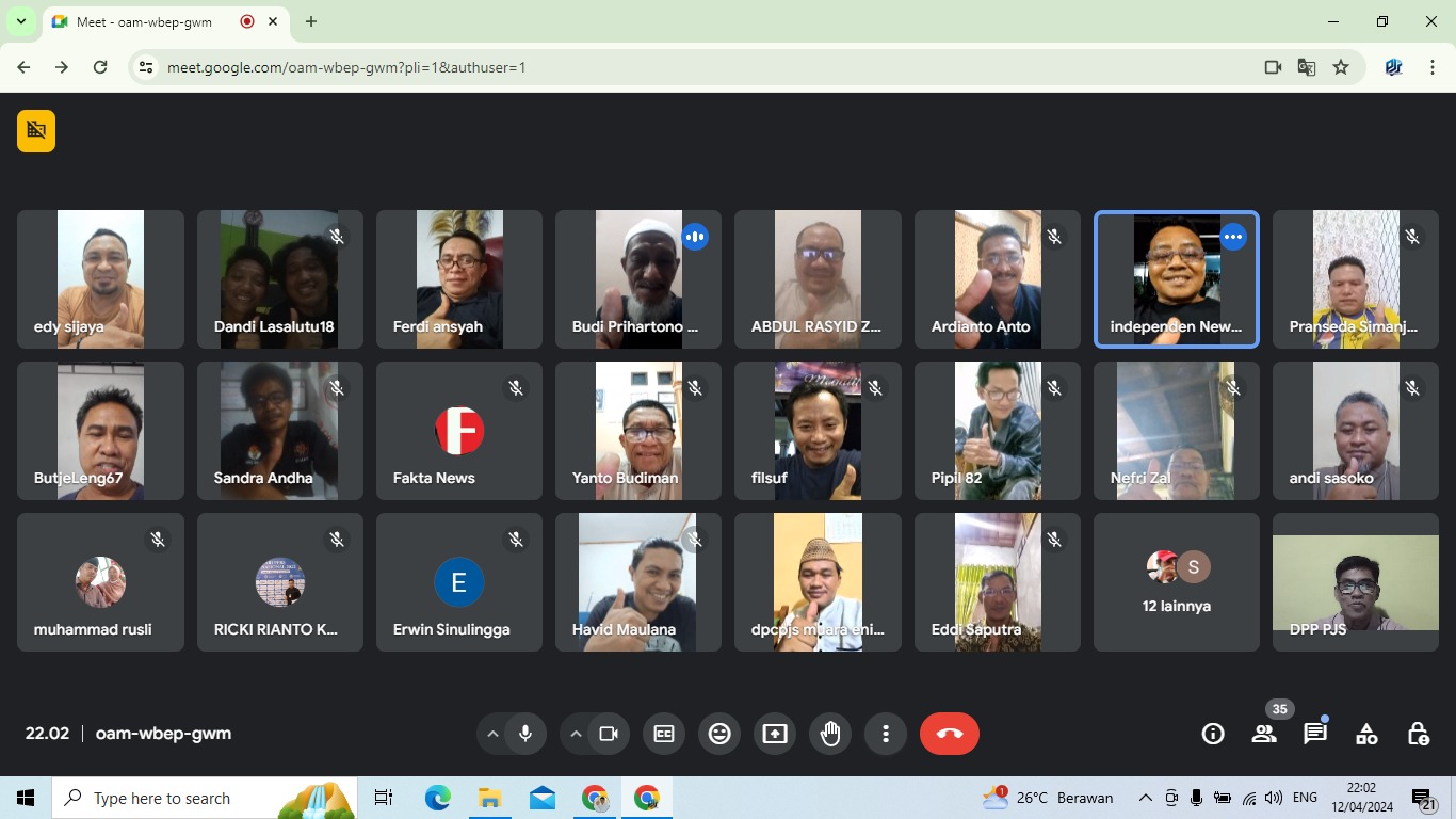 Hal itu disampaikan ketua umum (Ketum) Dewan pimpinan pusat (DPP) Pro Jurnalis Media Siber (PJS) Mahmud Marhaba pada zoom meeting Bersama seluruh pengurus PJS se-Indonesia dalam kegiatan Halal bi Halal serta ruang dialog soal media dan kewartawanan, di Kantor DPP PJS Jakarta, Jumat (12/04/2024), sekitar pukul 19.45 WIB.