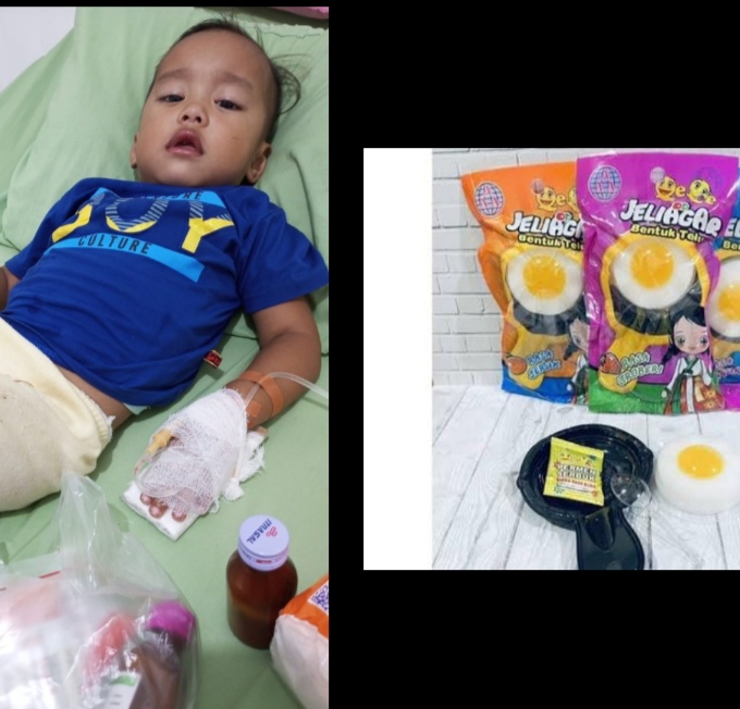 Akibat beli dan makan jajanan bertuliskan Jeli Agar, bentuk telur tersebut, kempat anak itu, Iqbal (3), Azrina (4,5), Raka (2), dan Abel (10) hanya berselang sekitar 30 menit anak tersebut mengalami muntaber.