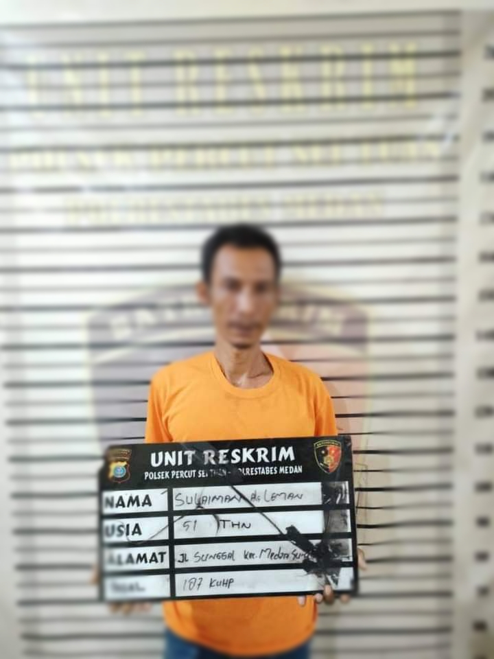 Kini, Sulaiman pun telah ditahan di Polsek Medan Tembung dengan disangkakan Pasal 187 KUHPidana. KRG – (**)