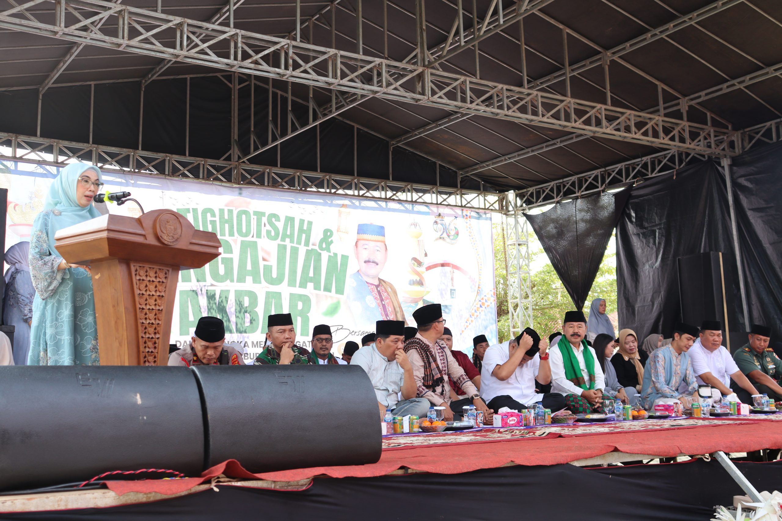 Way Kanan –kabargham.com Dalam rangka memperingati Hari Jadi Ke-26 Kabupaten Way Kanan, Pemerintah Kabupaten Way Kanan menggelar Istighotsah dan Pengajian Akbar di Halaman Buway Pemuka Pemda setempat, Selasa (29/04/2025). Acara ini secara resmi dibuka oleh Pelaksana Tugas (Plt.) Bupati Way Kanan, Ayu Asalasiyah, S.Ked.