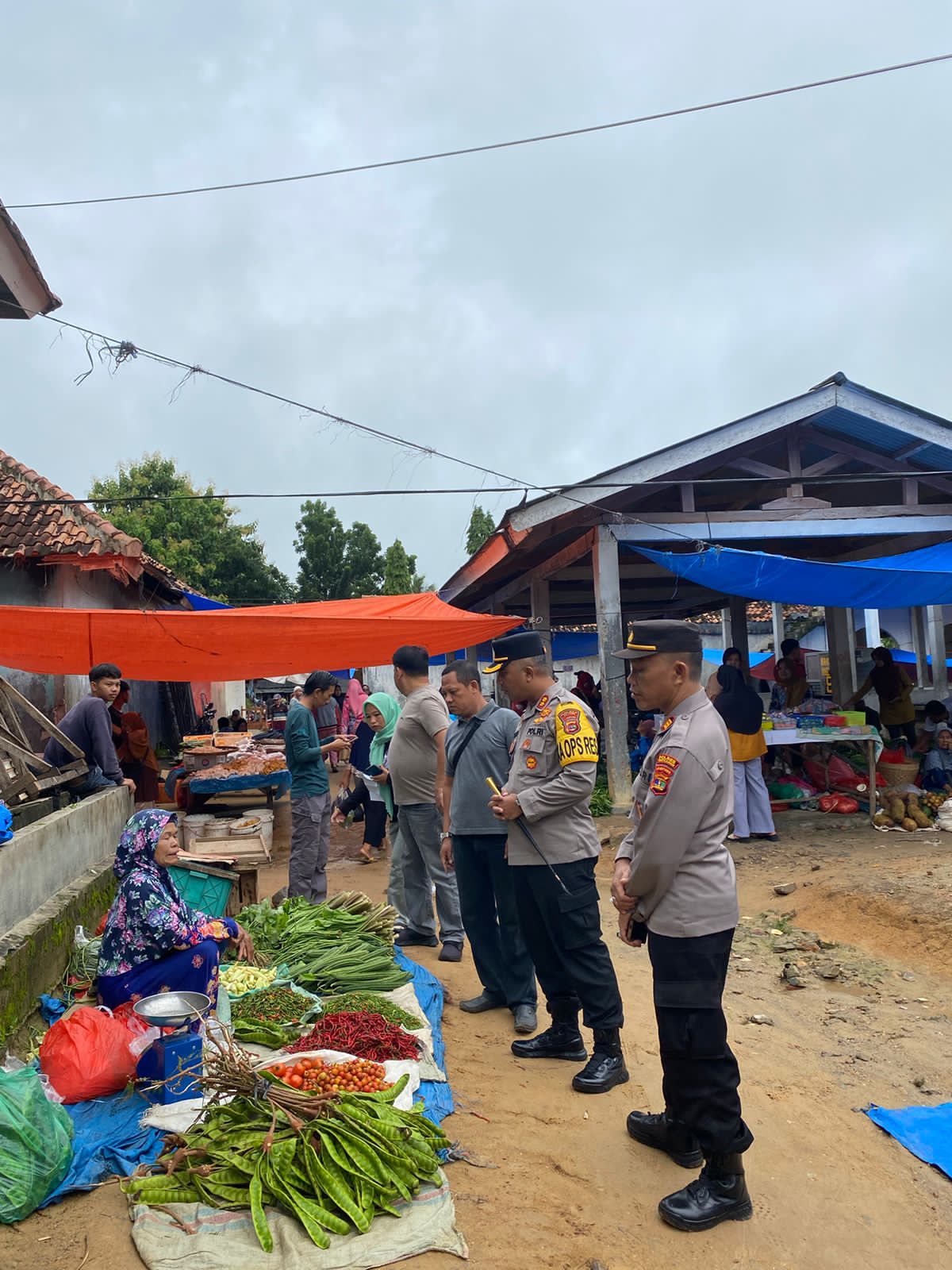 Kapolres Way Kanan AKBP Pratomo Widodo melakukan pemantauan harga sembako terkait ketersediaan dan stabilitas harga beras menjelang bulan Ramadhan kemudian berkomunikasi dengan beberapa pengunjung dan pedagang salah satunya Isnawati pedagang beras asal baradatu.