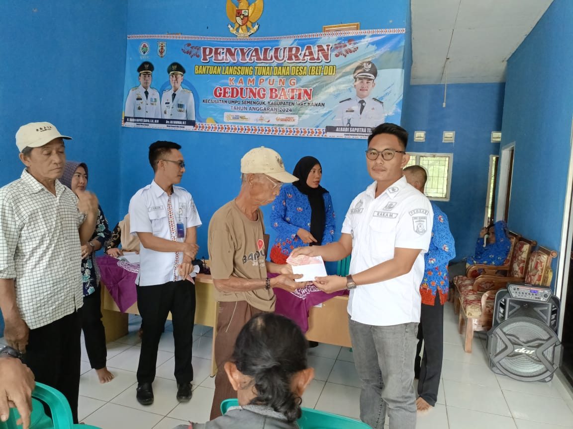 Pemerintah Kampung gedung batin melaksanakan pembagian BLT dana desa tahun 2024 di desa Gedung Batin Kecamatan Umpu semenguk Kabupaten Way Kanan.
