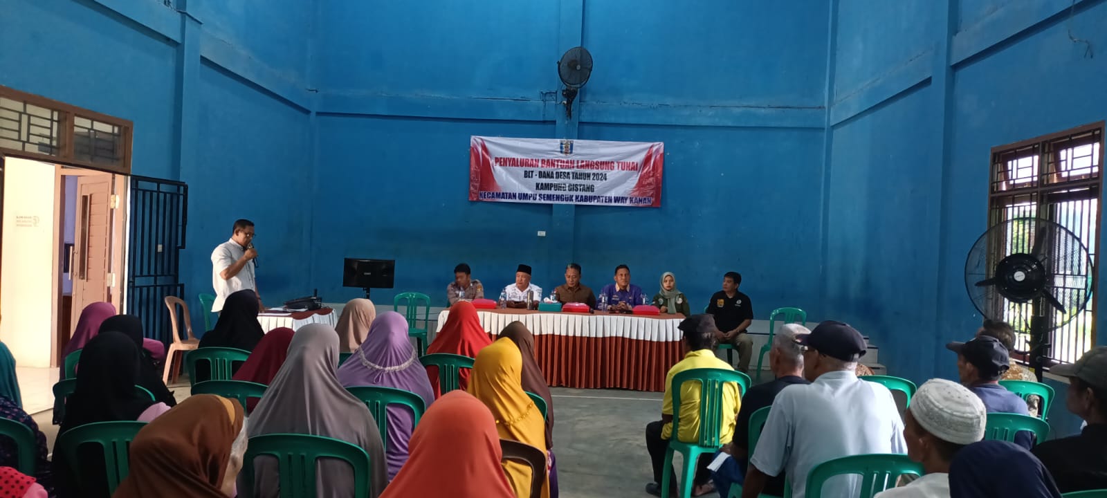 Tampak hadir dalam kegiatan tersebut sekcam Umpu Semenguk,Babinsa,ketua BPK,PD dan PLD kampung Gistang,serta warga penerima Bantuan.