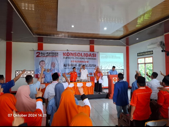 Ia menegaskan bahwa konsolidasi ini juga merupakan upaya untuk mempersiapkan pemenangan pasangan calon Ali Rahman – Ayu Asalasiyah