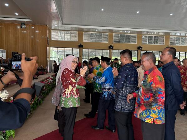 Ayu Asalasiyah dalam sambutannya mengucapkan selamat Hari Raya Idul Fitri kepada seluruh peserta. Ia menekankan pentingnya menjadikan acara Halal Bihalal sebagai ajang untuk mempererat tali silaturahmi dan memperkuat kerja sama dalam memajukan Kabupaten Way Kanan. Menurutnya, sinergi antara pemerintah daerah dan aparatur sipil negara, seperti camat dan kepala kampung, menjadi kunci penting dalam pembangunan daerah.