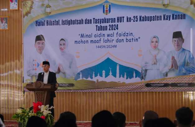 KABARGHAM.COM -Dalam Rangka Tasyakuran HUT Ke-25 Kabupaten Way Kanan Tahun 2024,Pemerintah Kabupaten Way Kanan menggelar Acara Halal Bihalal Hari Raya Idul Fitri 1445 H dan Istighotsah serta di Gedung Pusiban, Senin (22/04/).