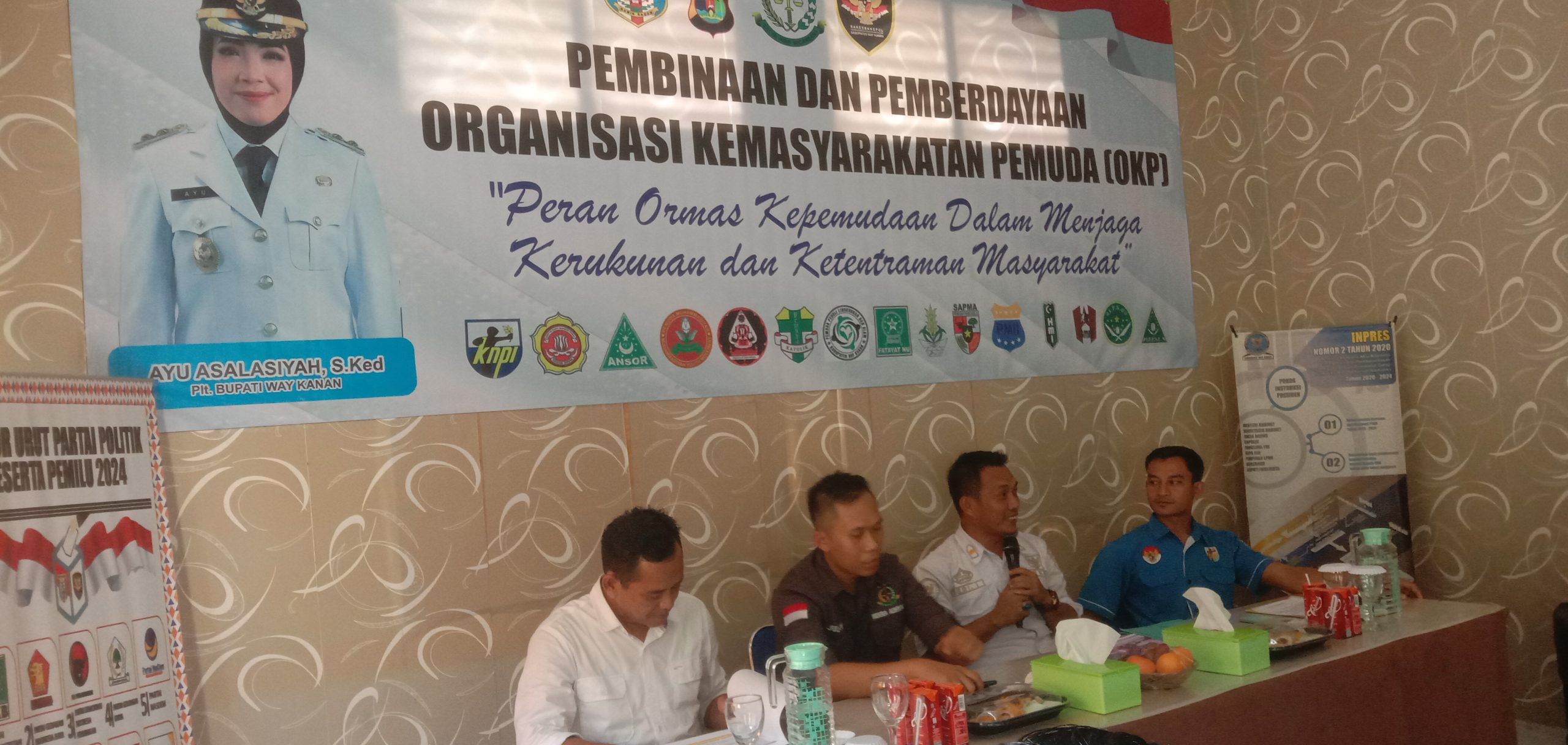Turut Hadir dalam acara okp,kadis kesbngpol, bidang kabit politik mendagri,kasat intekam polres waykanan, kejaksaan negeri waykanan. Serta seluruh OKP yang ada di waykana sebnyak 15 okp yang hadir.7/5/25