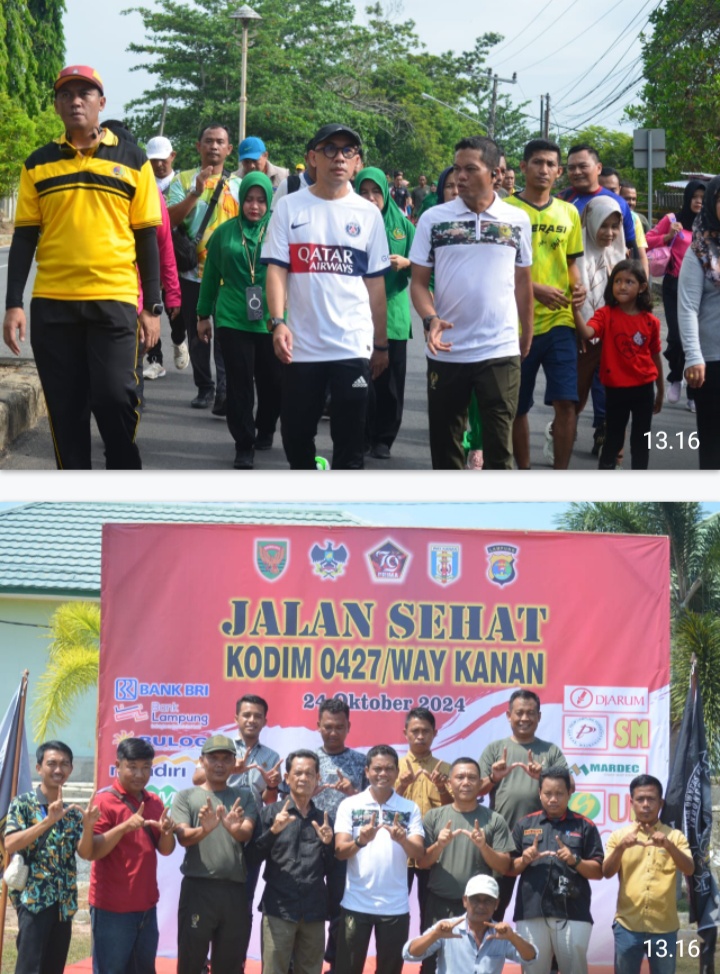 Adapun yang hadir dalam kegiatan jalan sehat tersebut yaitu Bupati Way Kanan H. Raden Adipati Surya, S.H. M.M., Komandan Kodim 0427/Way Kanan Letkol Inf Aan Fitriadi, S.I.P., M.Hub.Int., Kapolres Way Kanan AKBP Adanan Mangopang, S.I.K. beserta anggota. Kajari Way Kanan Danskandron 12 Serbu Letkol Cpn. Ferry Eko Saputra, S.I.P., Danlanudad Gatot Subroto Letkol Cpn. Kandek Pratikno, Kepala BPN Way Kanan Ibu Saidah, S.H., Kepala PN Bapak Arista Budi Cahyawan, SH.MH. Kepala BNN Way Kanan Ibu Dansubdenpom persiapan Way Kanan, perwakilan dari Instansi Vertikal Kabupaten Way Kanan serta jajaran pimpinan perusahaan dan Ribuan masyarakat Kabupaten Way Kanan.