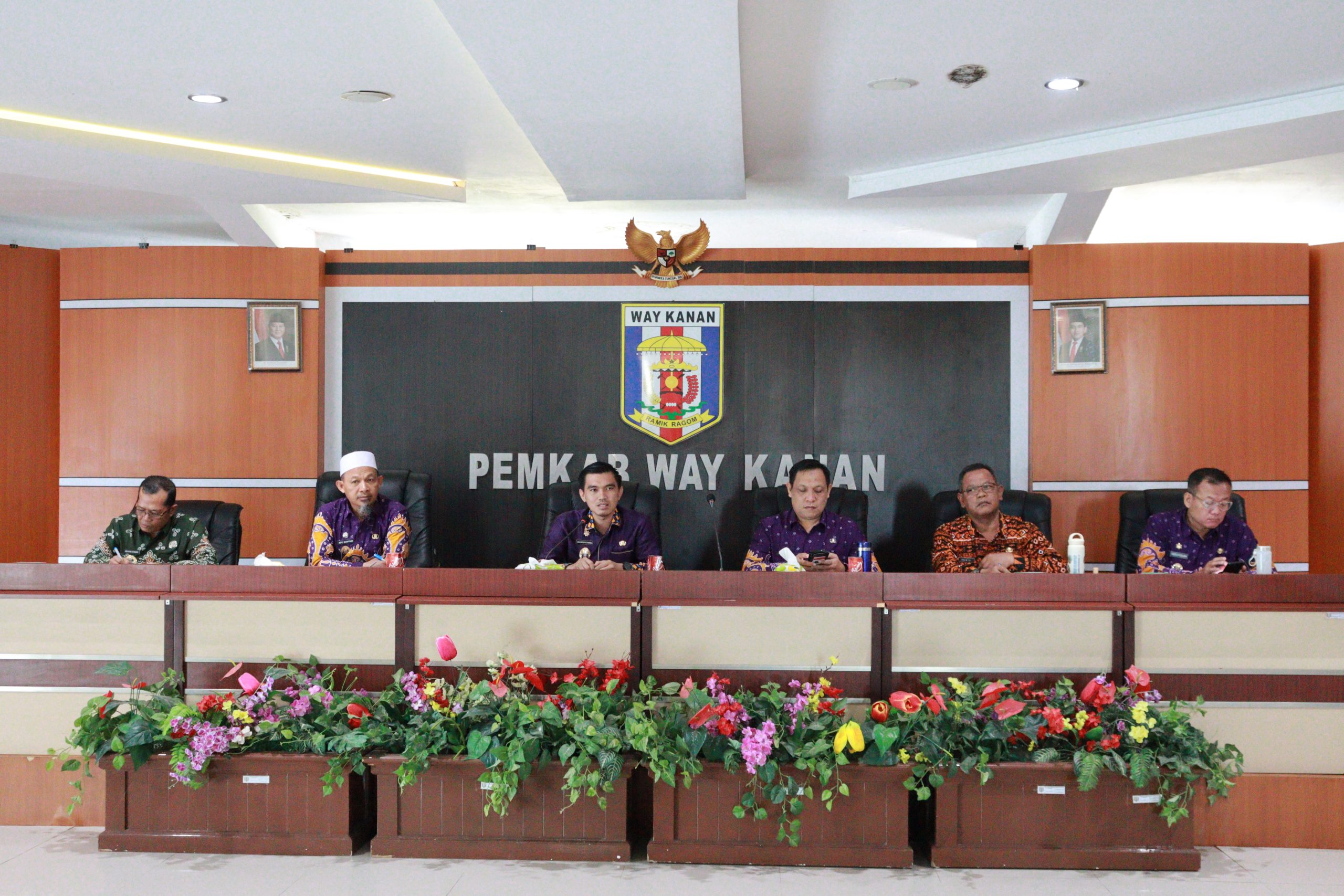 Penjabat (Pj.) Sekretaris Daerah Kabupaten, Dr. Arie Anthony Thamrin, S.STP., M.IP., CGCAE., CGRE memimpin Rapat Koordinasi Sekretariat Daerah Kabupaten Way Kanan di Ruang Buway Pemuka Pengiran Tuha, Kamis (24/04/2025).