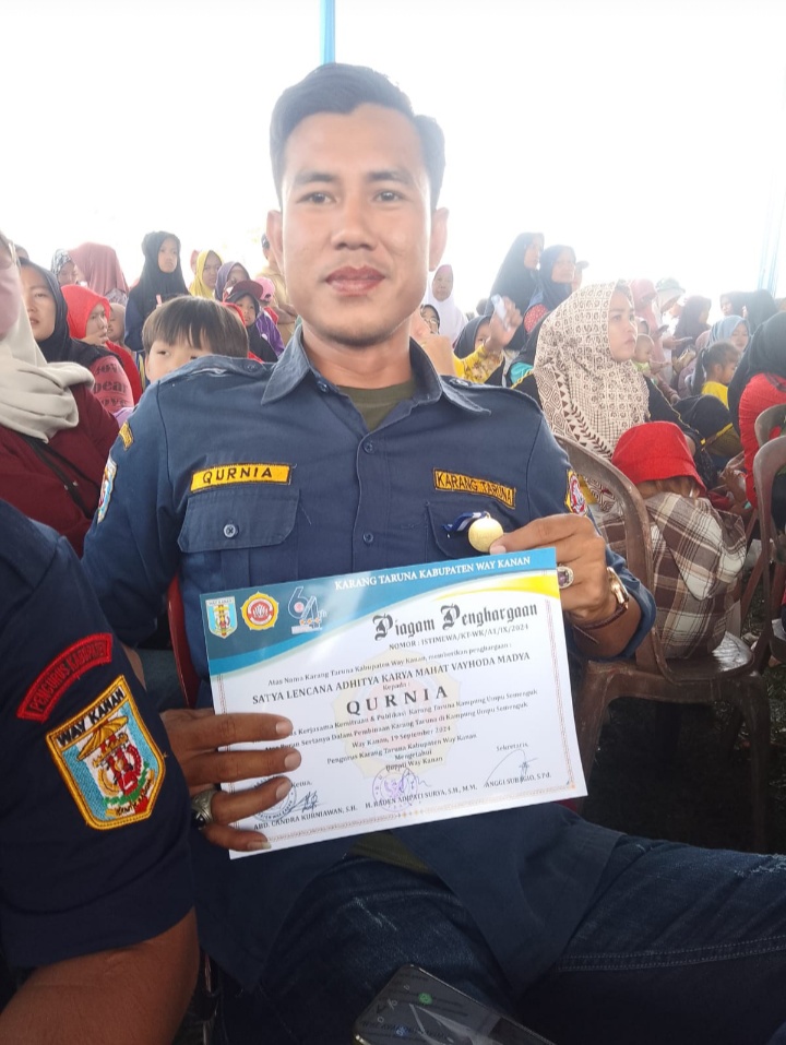 Mendapatkan Penghargaan Satya Lencana Adhitya Karya Mahatva Yodha Utama dari Karang Taruna Kabupaten Way Kanan pada acara Bulan Bhakti Karang Taruna setempat dan peringatan Hari Ulang Tahun Karang Taruna ke-64 di Bumi Baru, Kecamatan Blambangan Umpu, Kamis (19/09/2024).