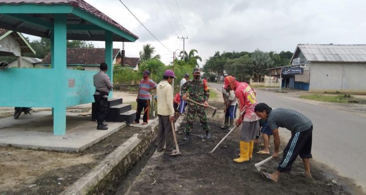 Babinsa Dan Bhabinkamtibmas Gotong Royong Bersihkan Jalan Di Kampung Binaan