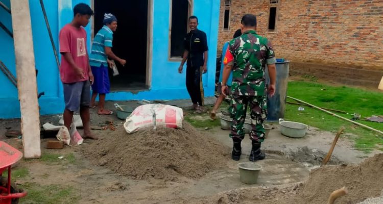 Jalin Kedekatan,Babinsa Bantu Warga Bangun Rumah di Desa Binaan