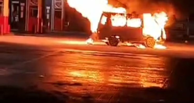 KABARGHAM.COM – Satu Unit Mobil mini bus terbakar di SPBU 24.345.21 Bumi