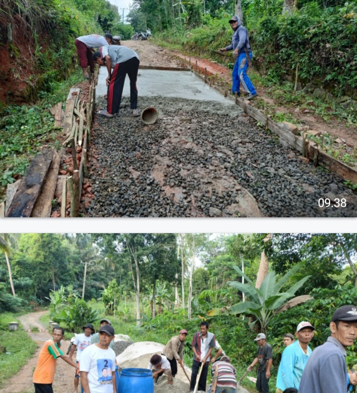 Warga yang datang dengan semangat tinggi beramai-ramai melaksanakan pengecoran jalan yang berlubang dan rusak.Kami menyadari bahwa inilah jalan utama, oleh karena itu kami bersama-sama turun tangan untuk memperbaikinya.